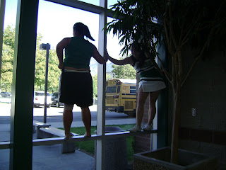 So for the rest of the day school was pretty normal but after school the best thing happened to me. I was driving to pick up my friend Kiersten for cheer. Well I get her and we were driving to go get Nicole and I see that Nicole had left her shake from earlier so I threw it away in a garbage sack in my car (cause I was cleaning my car out before) and as I throw it away it spills all over me! My uniform has white on it and this shake was red... yeah it wasn't so great. I hurry and drive to my house and my family is all there and laugh a little since I had a shake all over me. My mom saved the day and washed out the shake pretty well while me and Kiersten cleaned up all the sticky stuff in my car. When I came in I grabbed my skirt and put it on and left for the game. I had no time to dry my skirt so I got to go to the game with a wet skirt... it was pretty awesome.
